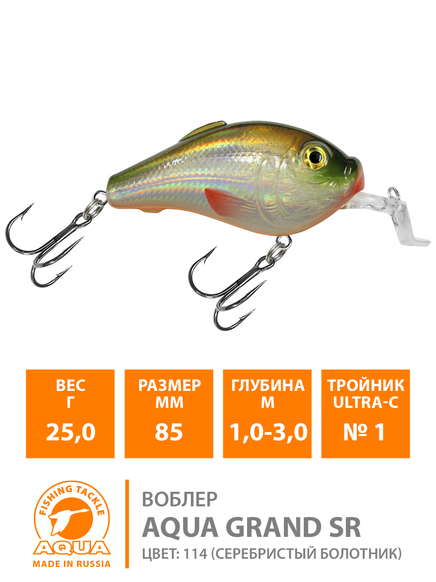 Воблер Aqua Grand SR плавающий 85мм 25гр 1-3м цвет 114 (серебристый болотник)