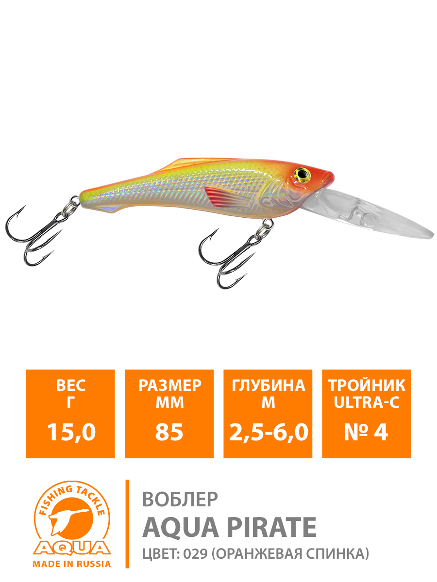 Воблер Aqua Pirate плавающий 85мм 15гр 2,5-6м цвет 029 (оранжевая спинка)