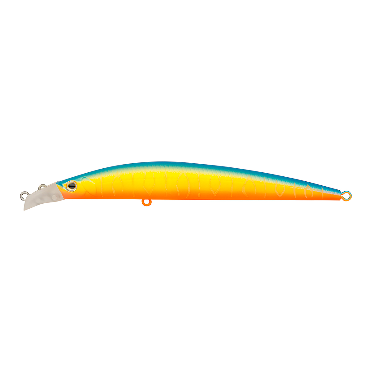 Конструктивной особенностью воблеров Strike Pro Top Water Minnow 110 служит лопатка особой конструкции, в которой расположены сразу две петли для лески. Таким образом, при закреплении лески за нижнюю петельку, приманка идет под самой поверхностью на глубине от 0,2до 0,3 м, за верхнюю - воблер опускается на глубину до 0,7 м.