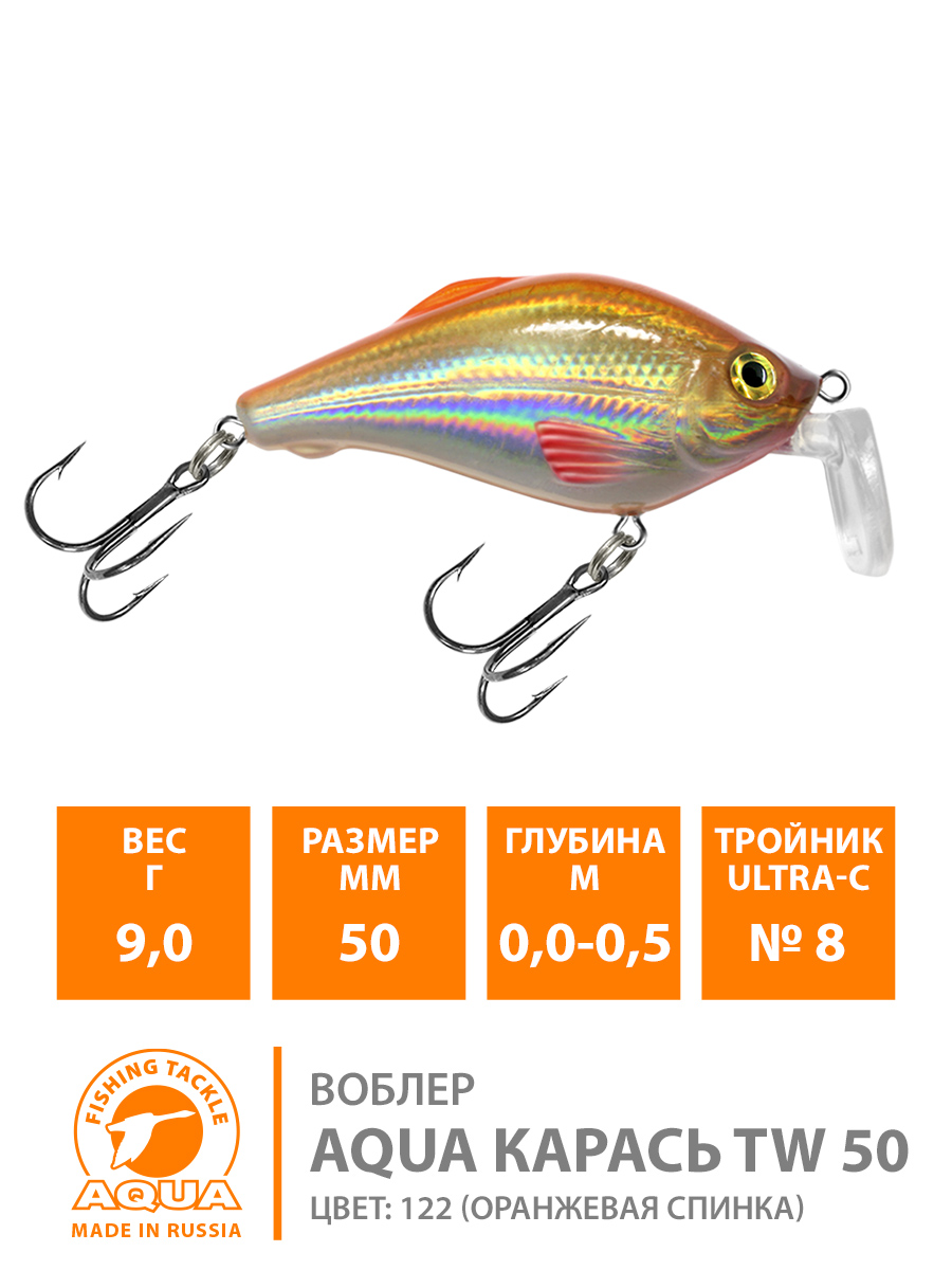Воблер Aqua Карась TW плавающий 50мм 9гр до 0,5м цвет 122 (оранжевая спинка)