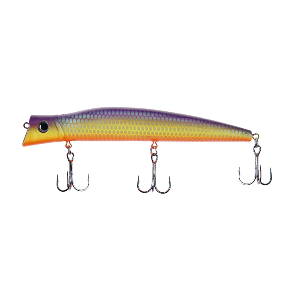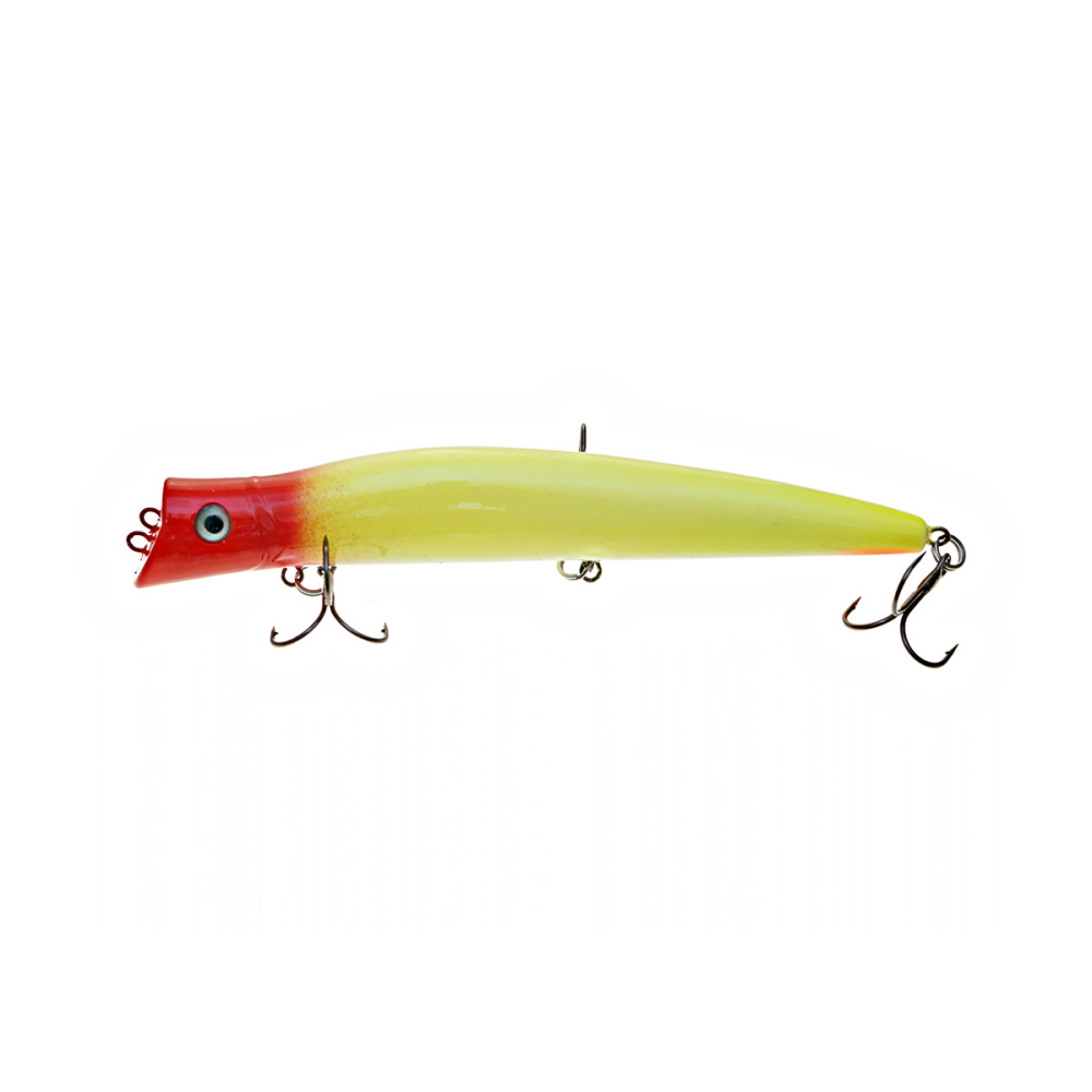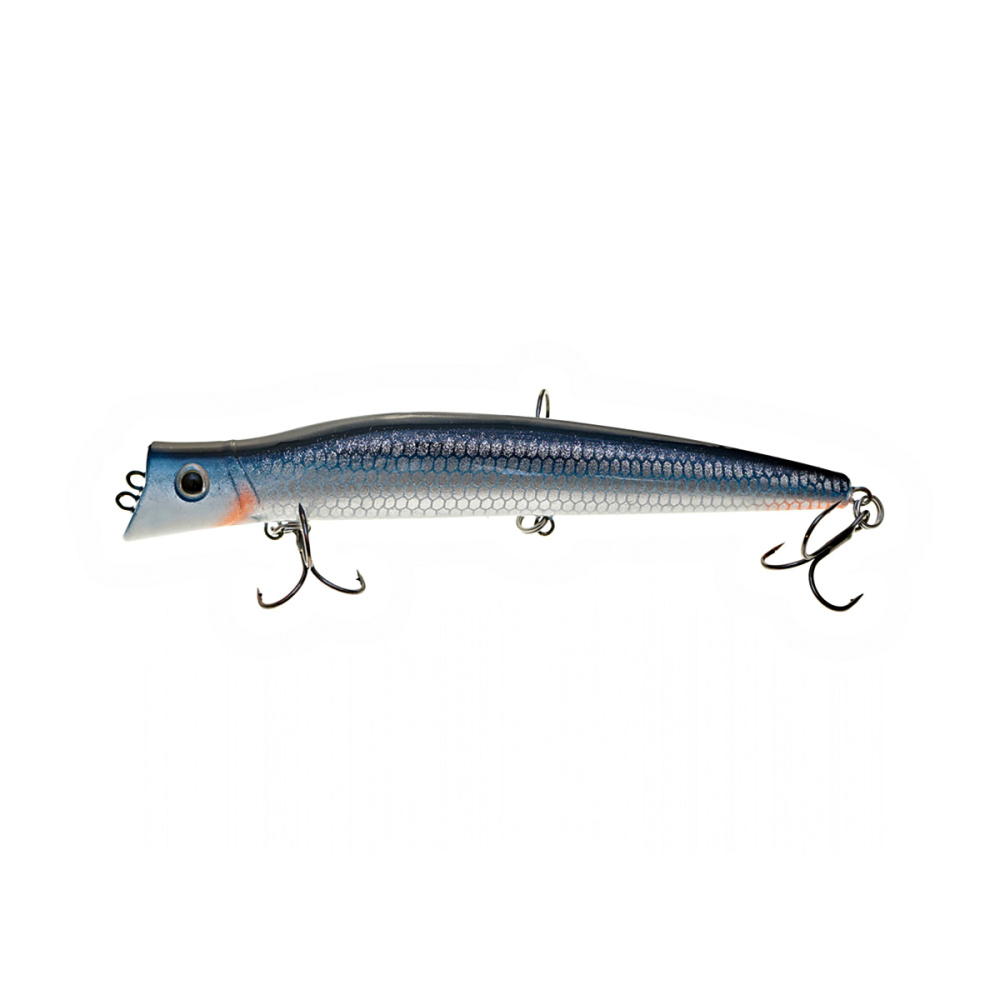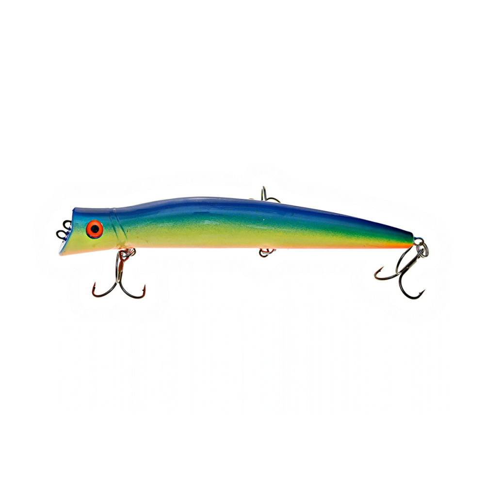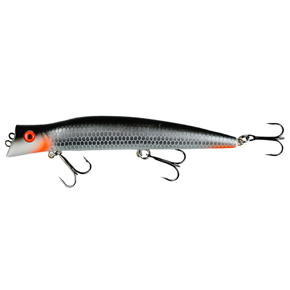 Если леску закрепить за нижнюю петельку, воблер меняет игру и идет под самой поверхностью. Воблер начинает играть более амплитудно с осевыми доворотами корпуса, привлекательно двигаясь даже на самых медленных скоростях проводки.