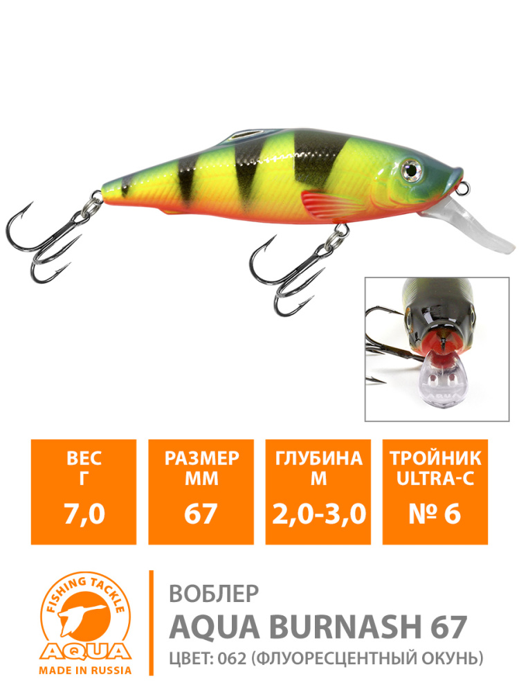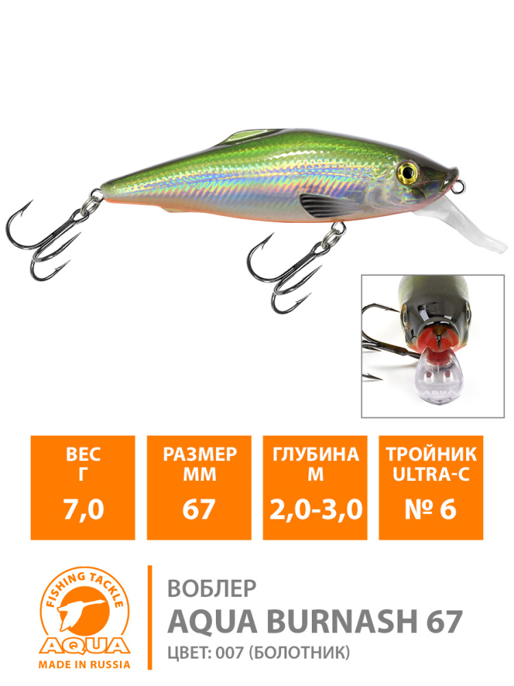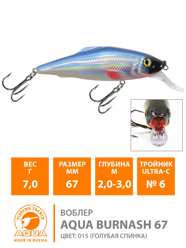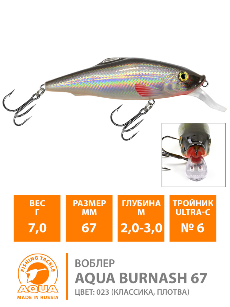 Воблер Aqua Burnash плавающий 100мм 22гр 1-2,5м цвет 023 (классика, Плотва)