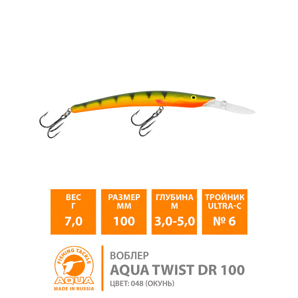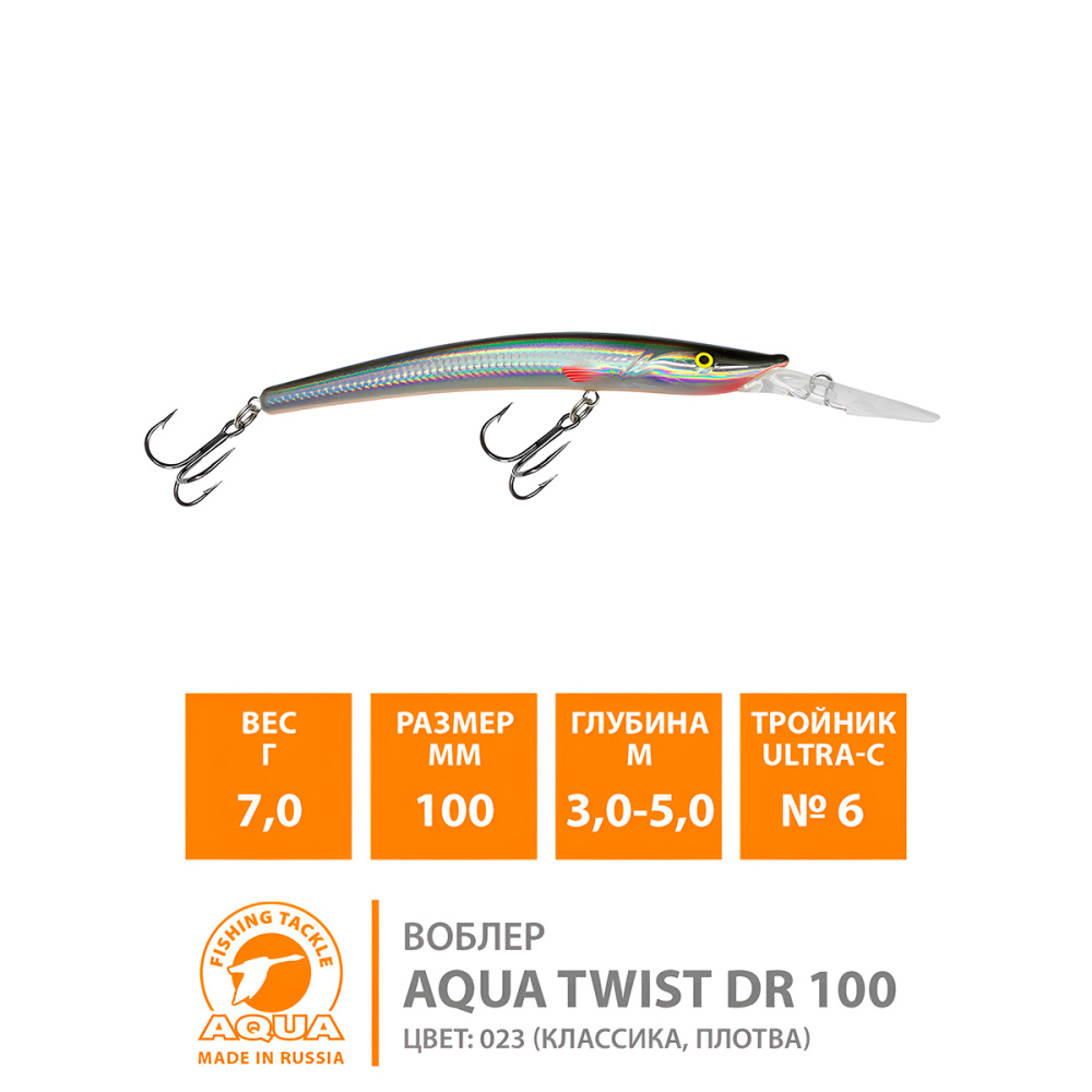 Воблер Aqua TWist DR плавающий 100мм 7гр 3-5м цвет 014 (клоун)