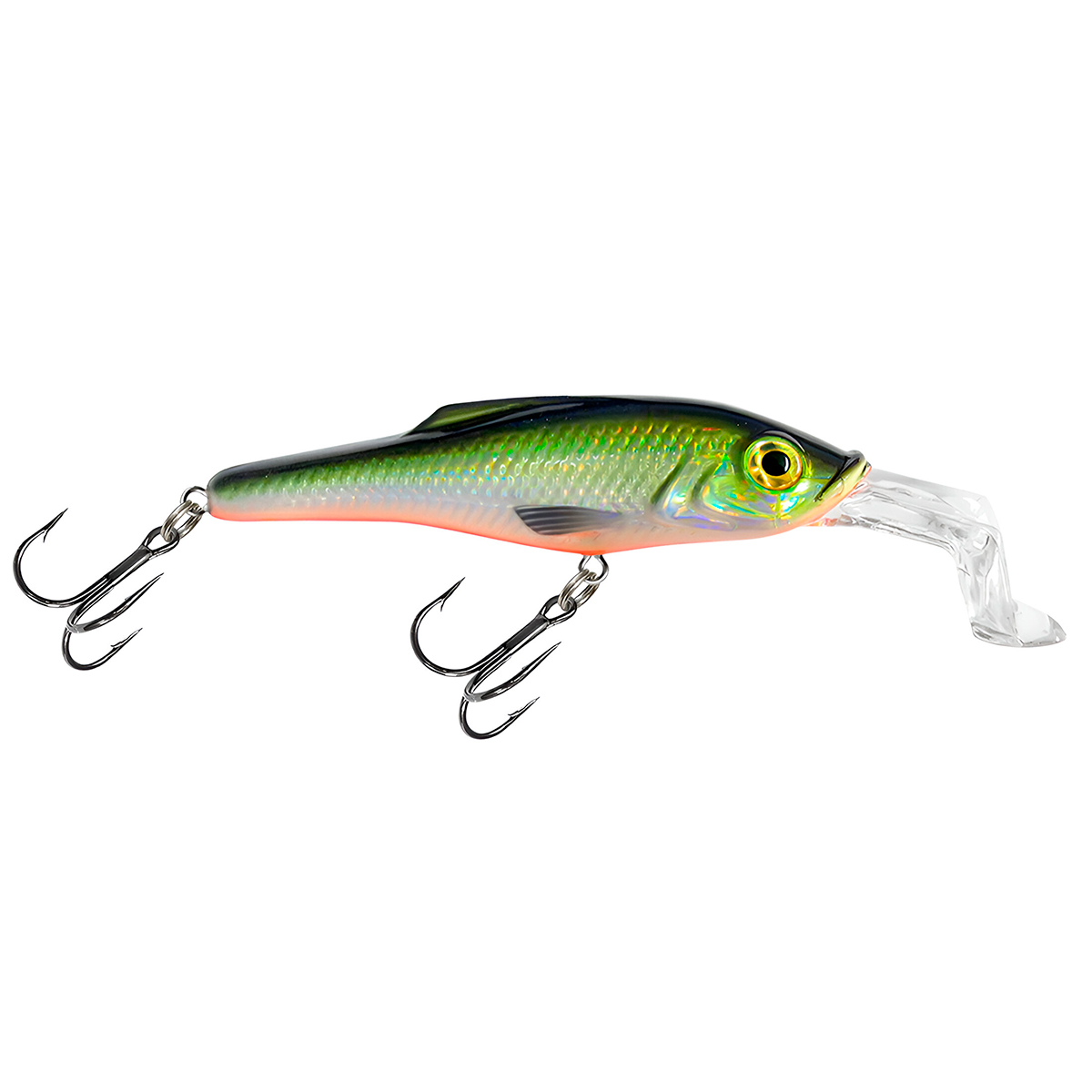 Заглубляющая носовая лопасть оригинальной формы, выдерживающая удары о донные камни при проводке, позволяет воблеру максимально быстро достигнуть заданной глубины, что важно при не очень дальних забросах.