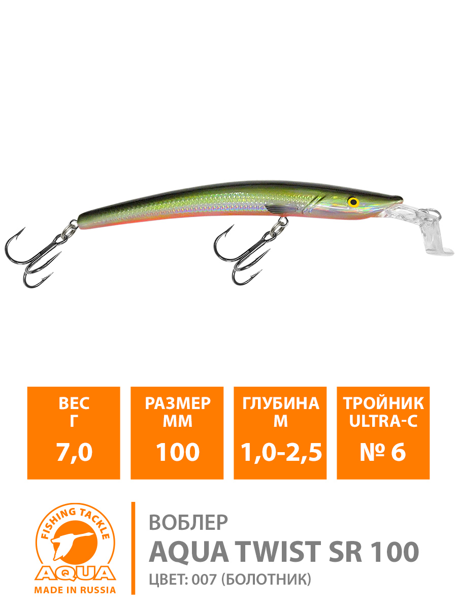 Воблер Aqua TWist SR плавающий 100мм 7гр 1-2,5м цвет 007 (болотник)