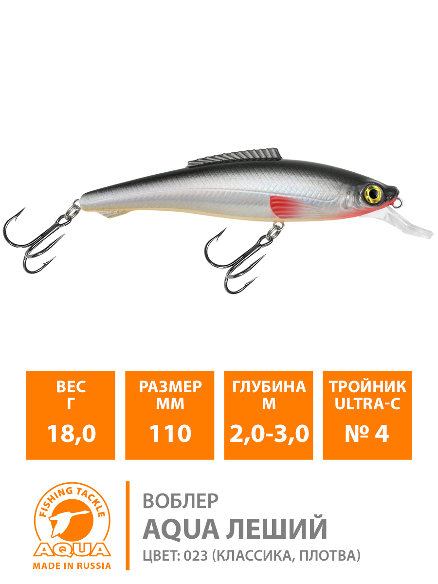 Воблер Aqua Леший плавающий 110мм 18гр 2-3м цвет 023 (классика, Плотва)