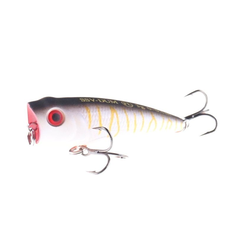 Его внешний вид детально проработан для максимального сходства с настоящей добычей для хищника. Этому способствует реалистично выполненная чешуя, жаберные крышки, а также глаза. Длина поппера составляет 4,3 см., а вес – 3 гр. Не только геометрия корпуса, но и расцветки тщательно продуманы экспертами компании. Можно выбрать как натуральные окрасы, так и яркие модели, которые рыбаку будет проще держать под контролем.