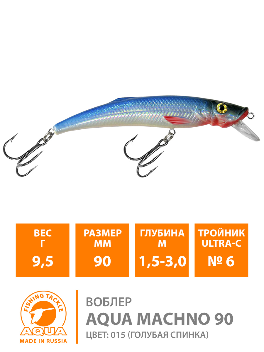 Воблер Aqua Machno плавающий 90мм 9,5гр 1,5-3м цвет 015 (голубая спинка)