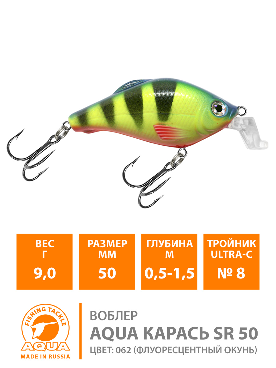 Воблер Aqua Карась SR плавающий 50мм 9гр 0,5-1,5м цвет 062 (флуоресцентный Окунь)