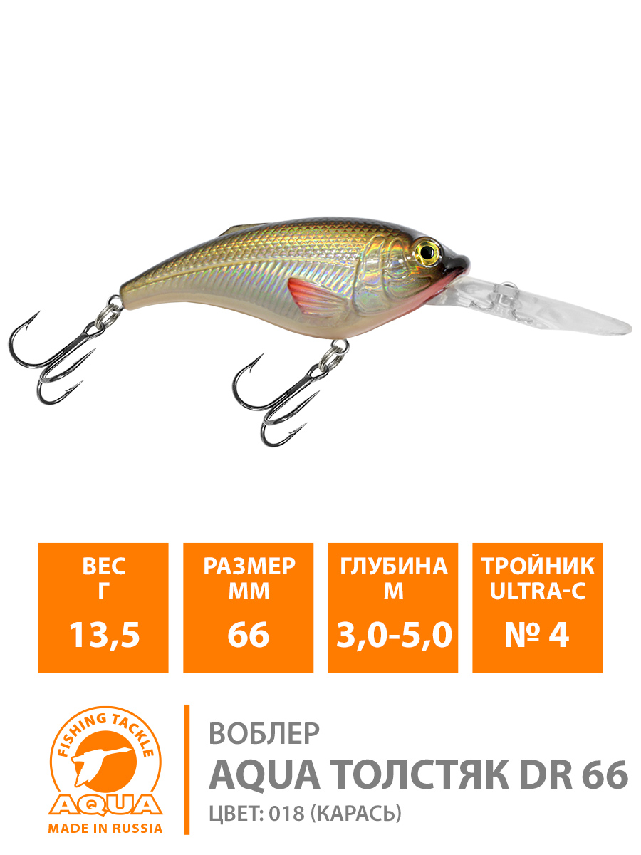 Воблер Aqua Толстяк DR плавающий 66мм 13,5гр 3-5м цвет 018 (Карась)
