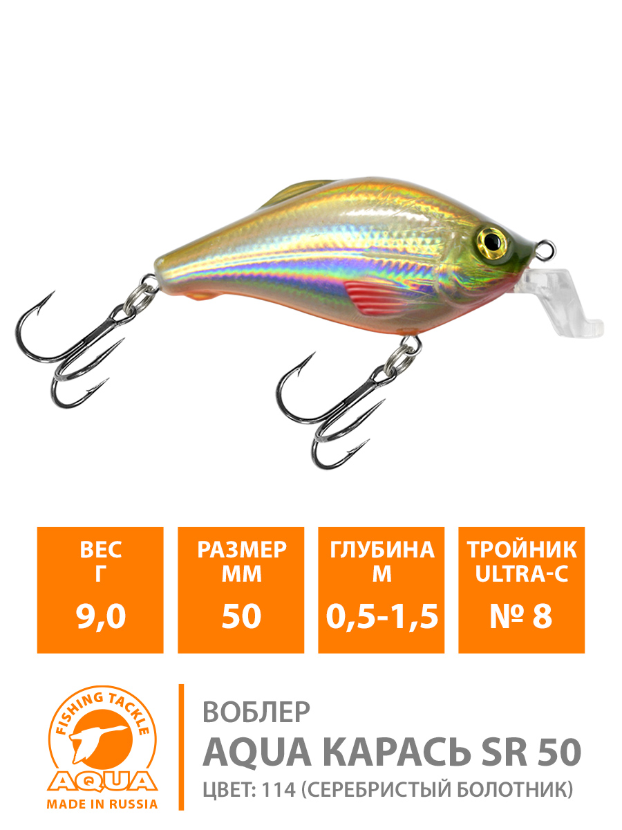 Воблер Aqua Карась SR плавающий 50мм 9гр 0,5-1,5м цвет 114 (серебристый болотник)