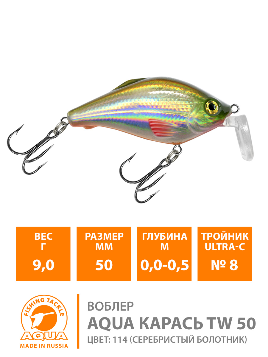 Воблер Aqua Карась TW плавающий 50мм 9гр до 0,5м цвет 114 (серебристый болотник)