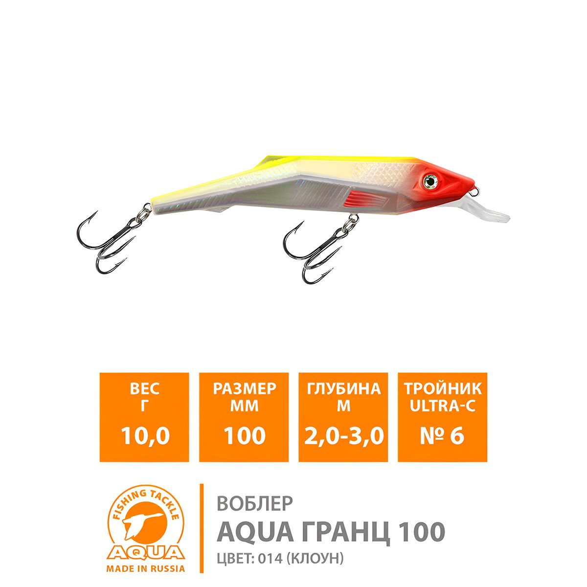 Воблер Aqua Гранц плавающий 100мм 10гр 2-3м цвет 014 (клоун)
