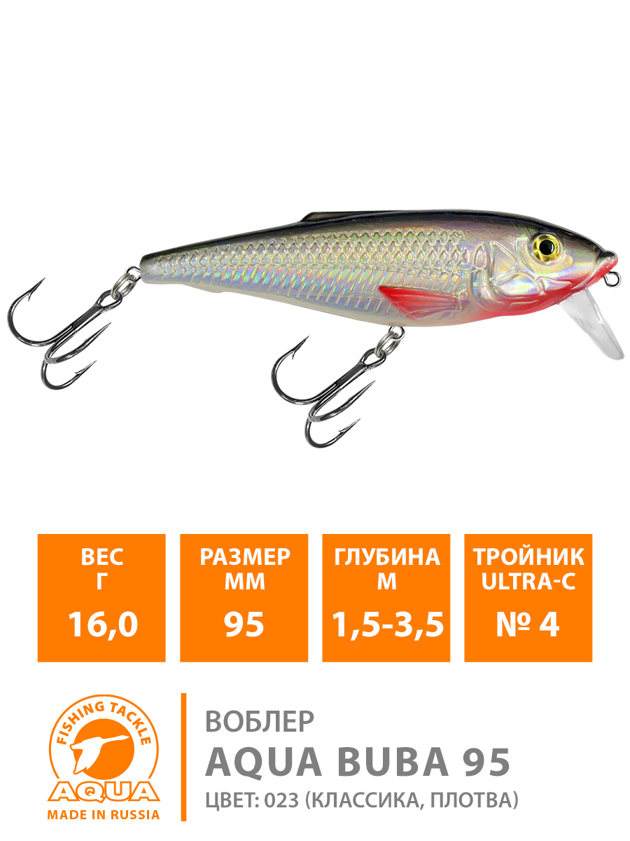 Воблер Aqua Buba плавающий 95мм 16гр 1,5-3,5м цвет 023 (классика, Плотва)