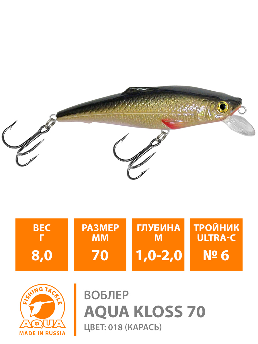 Воблер Aqua Kloss плавающий 70мм 8гр 1-2м цвет 018 (Карась)
