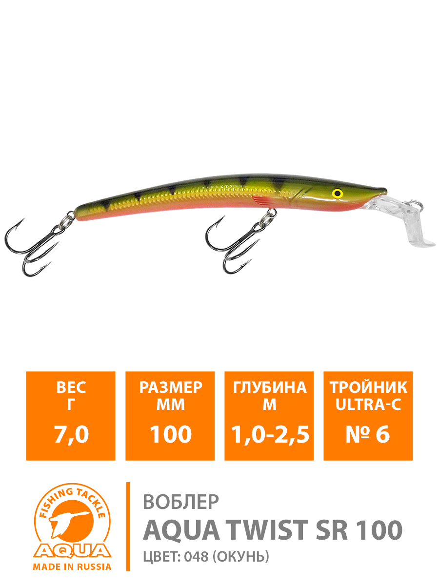 Воблер Aqua TWist SR плавающий 100мм 7гр 1-2,5м цвет 048 (Окунь)