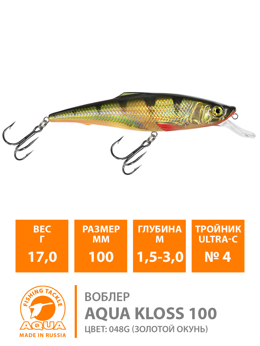 Воблер Aqua Kloss плавающий 70мм 8гр 1-2м цвет 048 (Окунь)