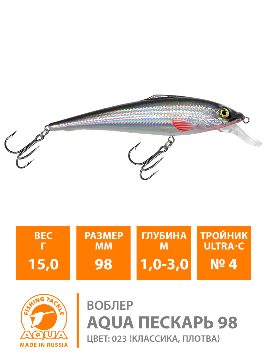 Воблер Aqua Пескарь плавающий 98мм 15гр 1-3м цвет 023 (классика, Плотва)