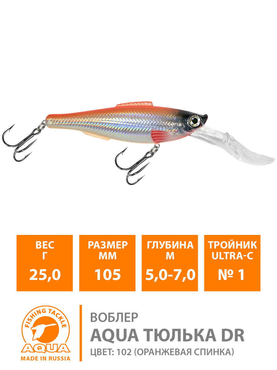 Воблер Aqua Тюлька DR плавающий 105мм 25гр 5-7м цвет 102 (оранжевая, золотистая спинка)