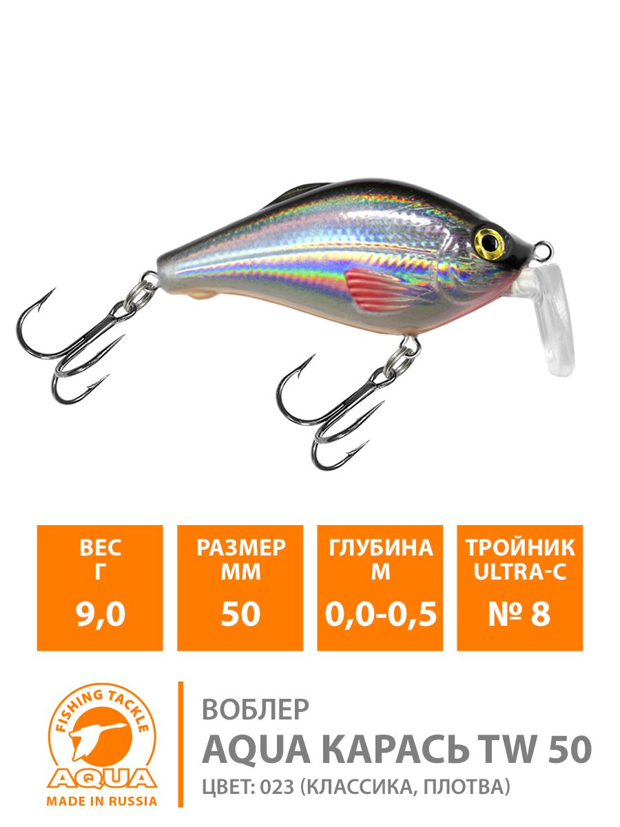 Воблер Aqua Карась TW плавающий 50мм 9гр до 0,5м цвет 023 (классика, Плотва)