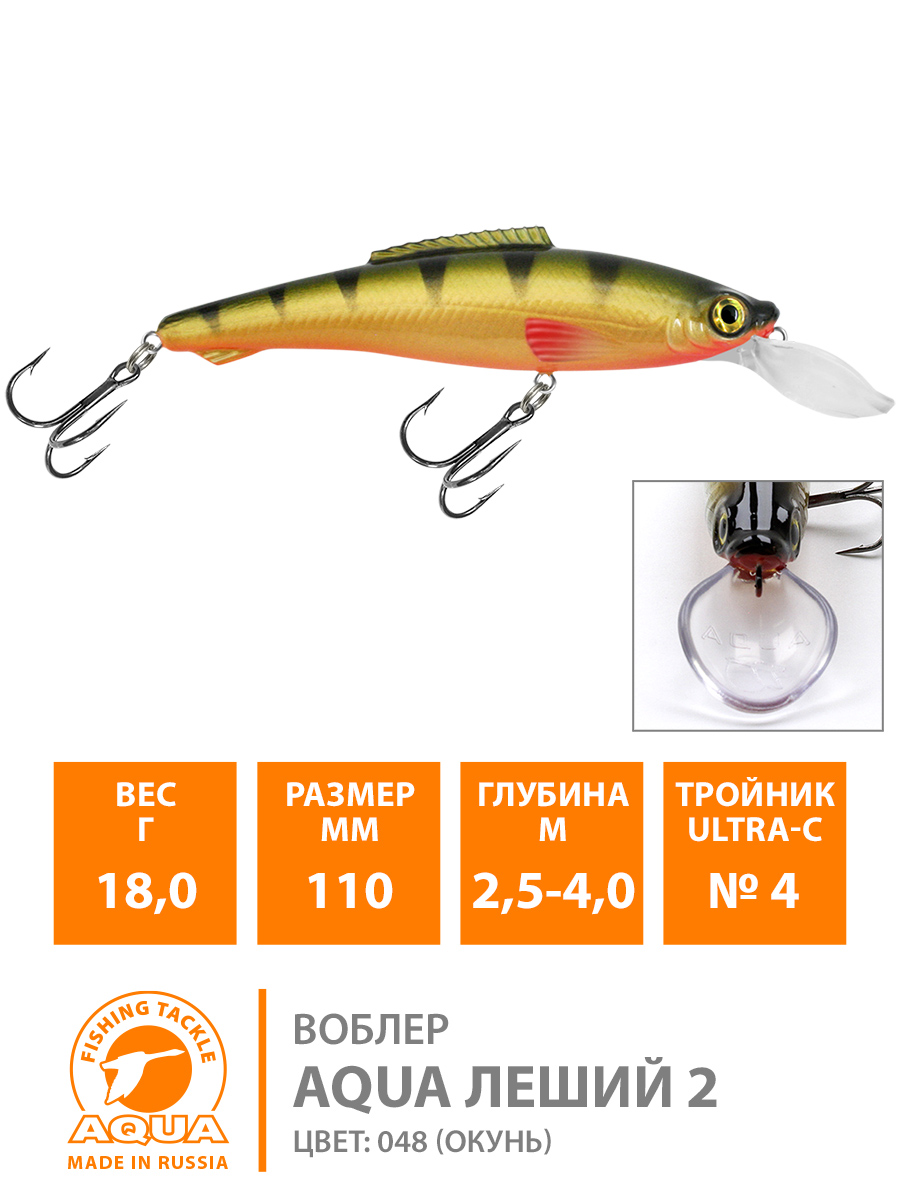 Воблер Aqua Леший-2 плавающий 110мм 18гр 2,5-4м цвет 048 (Окунь)