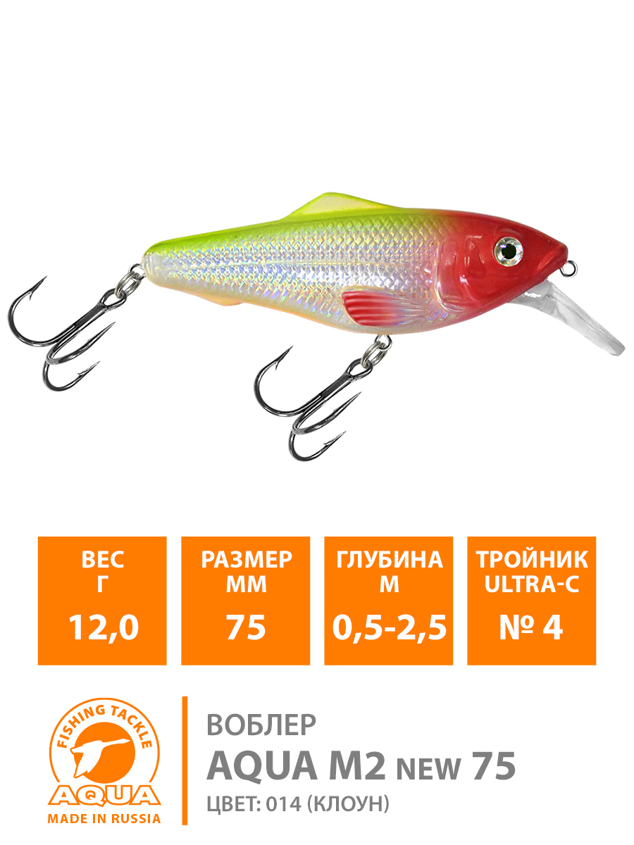 Воблер Aqua M-2 (new) плавающий 75мм 12гр 0,5-2,5м цвет 014 (клоун)
