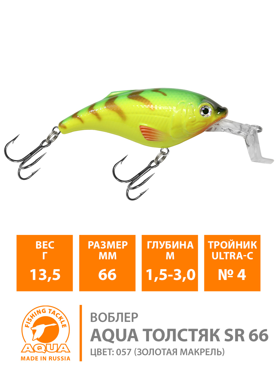 Воблер Aqua Толстяк SR плавающий 66мм 13,5гр 1,5-3м цвет 057 (золотая макрель)