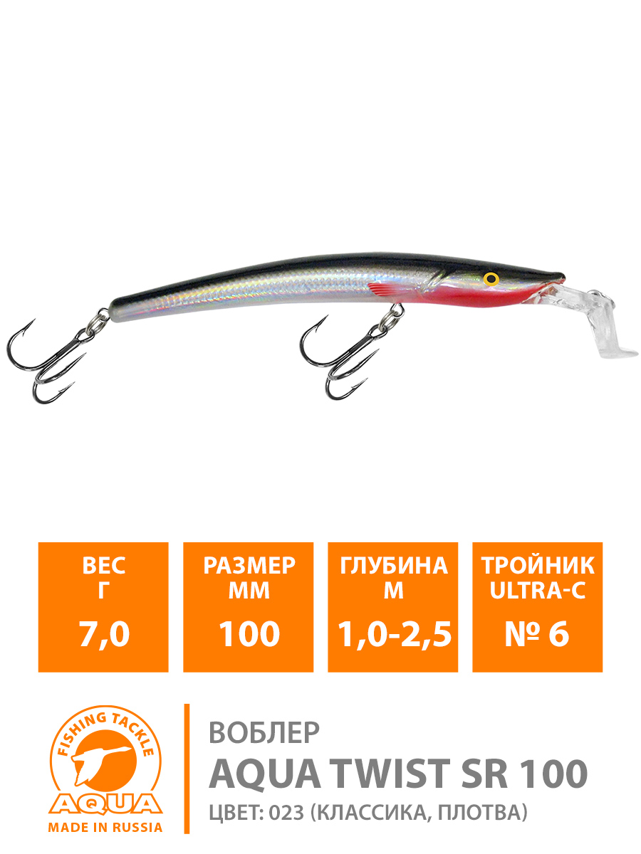 Воблер Aqua TWist SR плавающий 100мм 7гр 1-2,5м цвет 023 (классика, Плотва)