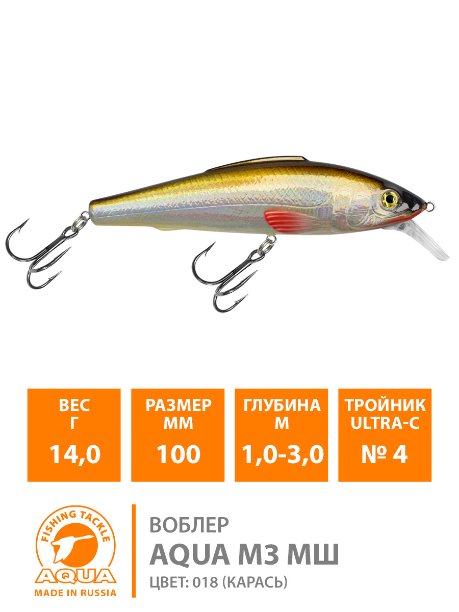 Воблер Aqua M-3-МШ плавающий 100мм 14гр 1-3м цвет 018 (Карась)