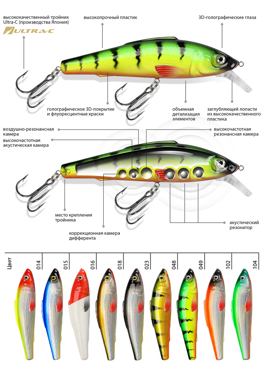 Стабильная, с широкой амплитудой игра направлена в первую очередь как на ловлю щуки или окуня, так и судака, жереха и многих лососевых рыб.