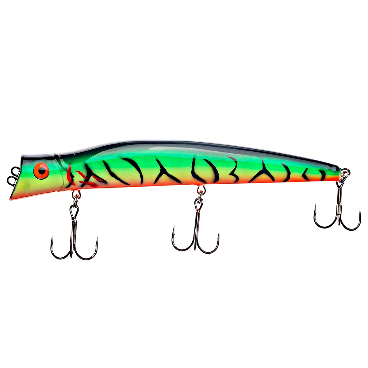 Если леску закрепить за нижнюю петельку, воблер меняет игру и идет под самой поверхностью. Воблер начинает играть более амплитудно с осевыми доворотами корпуса, привлекательно двигаясь даже на самых медленных скоростях проводки.