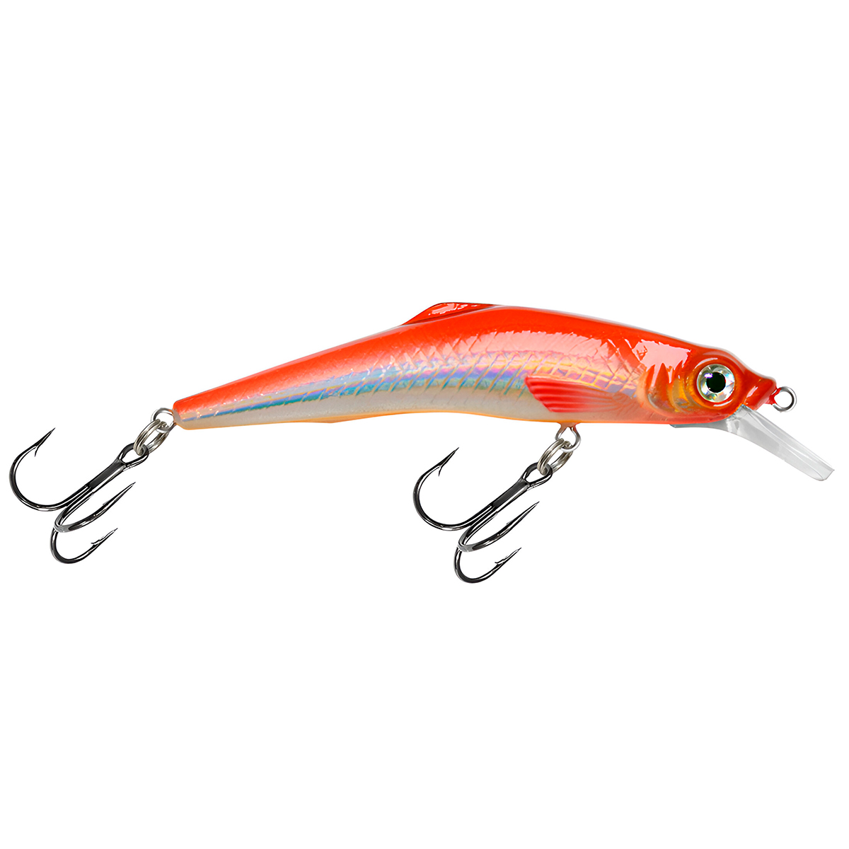 Форма приманки позволяет ей отлично держать сильное течение, ее не выбрасывает на поверхность при любой скорости проводки, а выверенные параметры огрузки и наличие коррекционной камеры дифферента придают приманке идеальную устойчивость при различных видах анимации и не дают воблеру заваливаться при медленной или рывковой проводке.