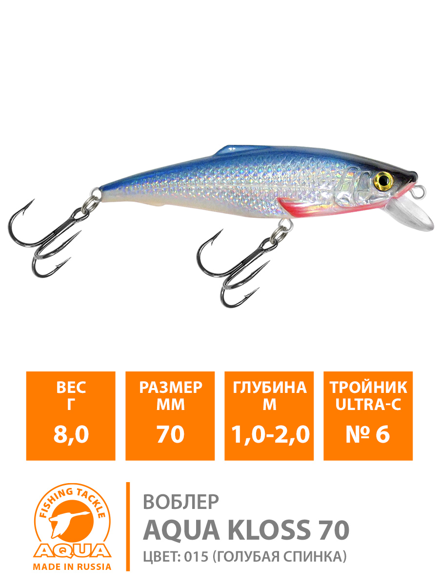 Воблер Aqua Kloss плавающий 70мм 8гр 1-2м цвет 015 (голубая спинка)