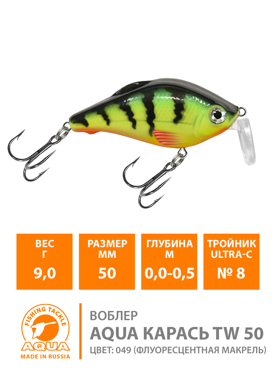 Воблер Aqua Карась TW плавающий 50мм 9гр до 0,5м цвет 048 (Окунь)