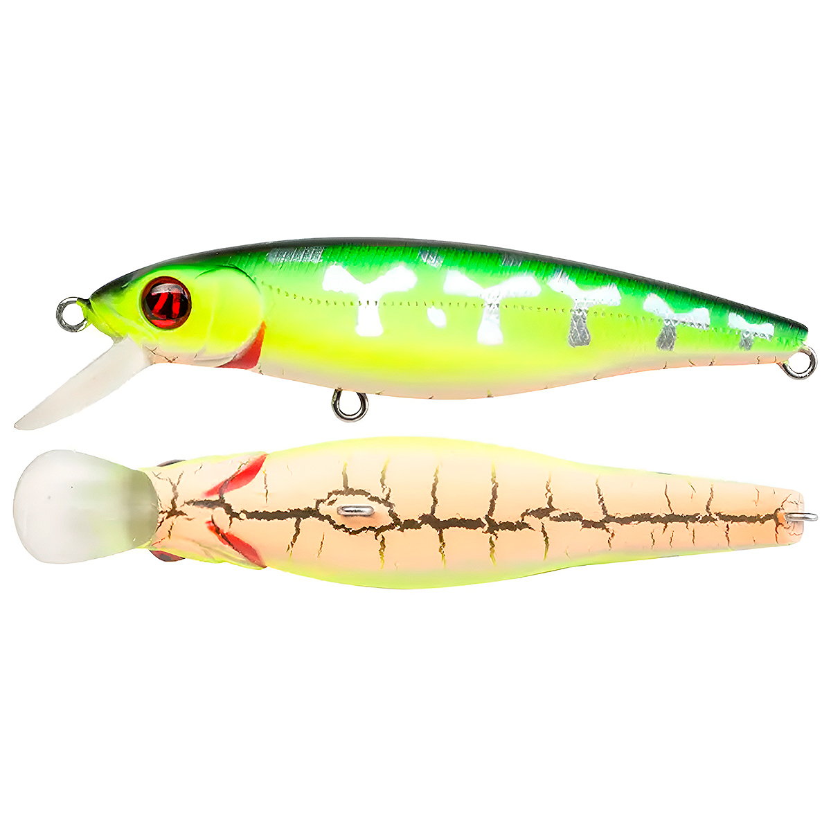 В объемистом брюшке искусно размещены два достаточно увесистых груза-балансира системы Mag Force Balance II. Хитроумная система балансировки вкупе именно с такой формой тела обеспечивает оптимальное расположение центра масс, поэтому-то приманка, обладая сравнительно большим собственным весом, активно играет на любой скорости проводки.