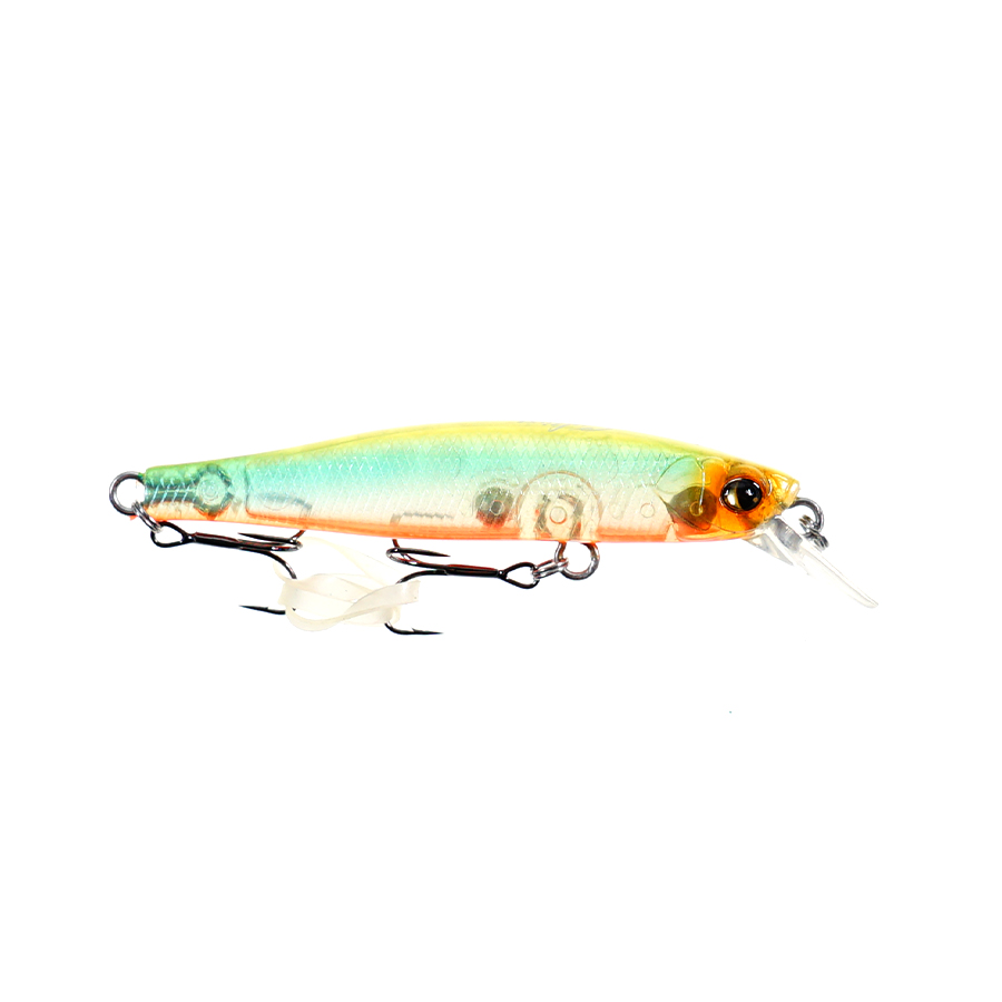 В отличие от более крупных вариантов линейки, эта 55‑мм версия с массой 2,6 г ориентирована на деликатную подачу — полётная стабильность обеспечивается балансировкой корпуса, а миниатюрные Owner ST‑11 №12 повышают реализацию поклёвок осторожной рыбы. При рывковой анимации воблер резко уходит в стороны и меняет траекторию, что провоцирует хищника; по характеру игры модель выделяется среди «минноу» того же класса заглубления.