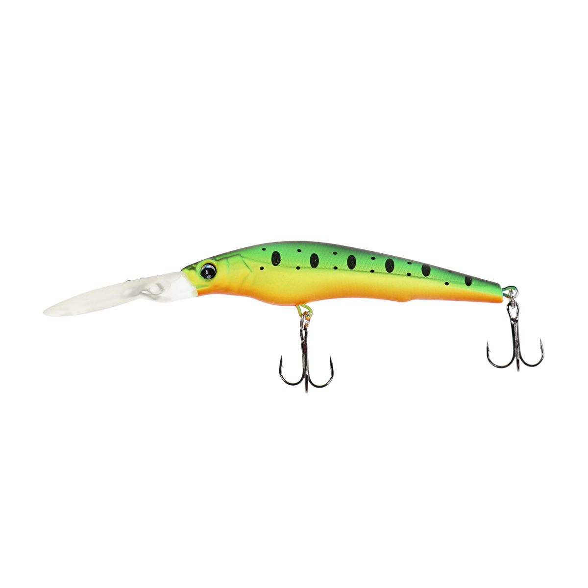 Этот воблер оснащен нижними активными крючками, устойчивыми к повреждениям при столкновениях с камнями и другими препятствиями на дне. Он подходит для ловли крупных хищников, способный создавать заметную дрожь и квокер, которая дополнительно стимулирует клев.