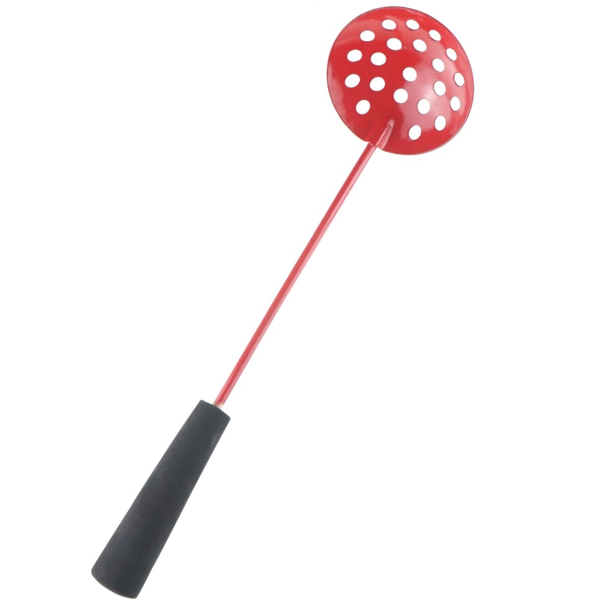 Черпак для льда металлический малый 34,5см d9см с неопреновой ручкой, красный