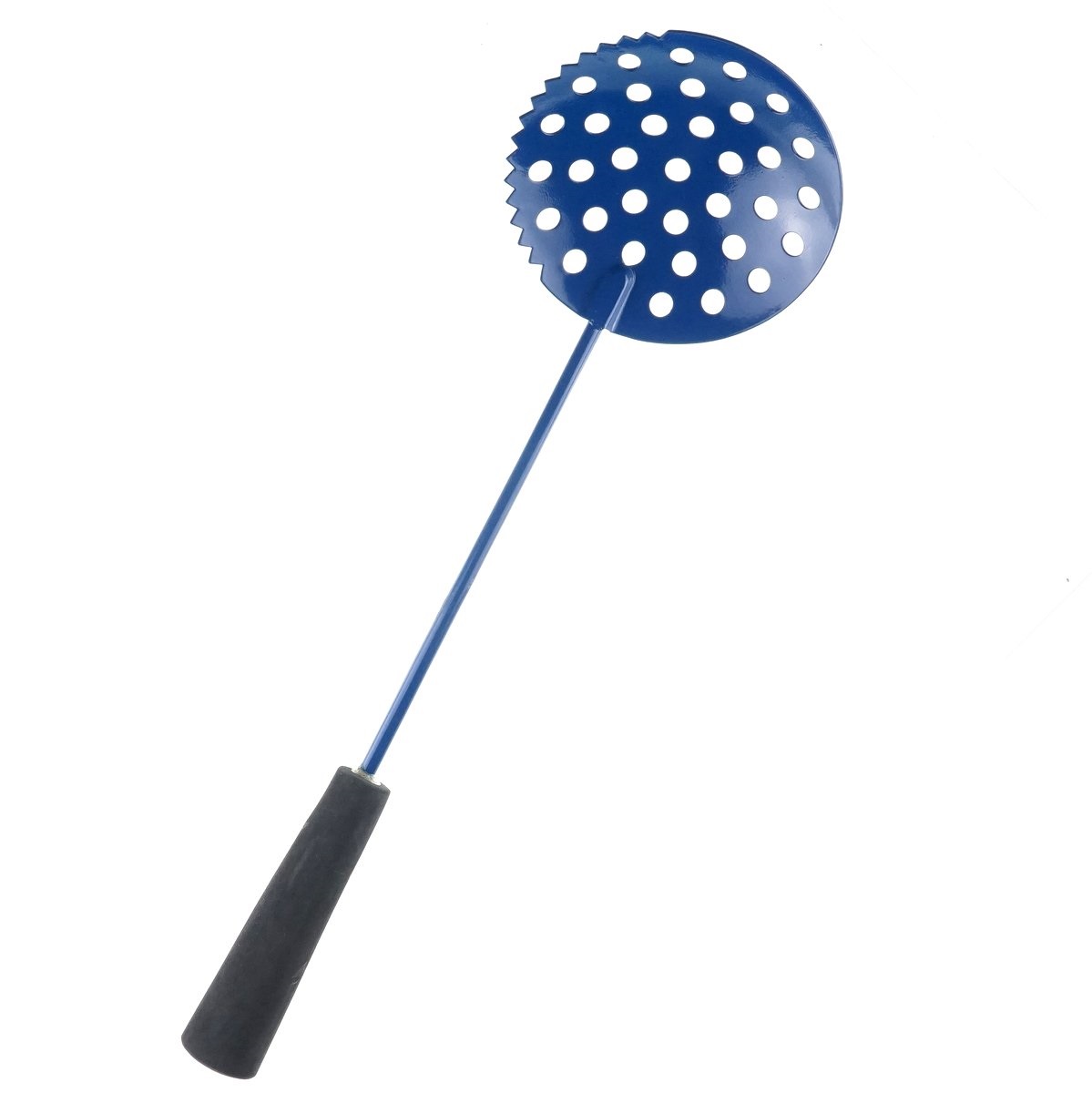 Черпак для льда металлический большой 36,5см d11см с неопреновой ручкой и зубьями, синий