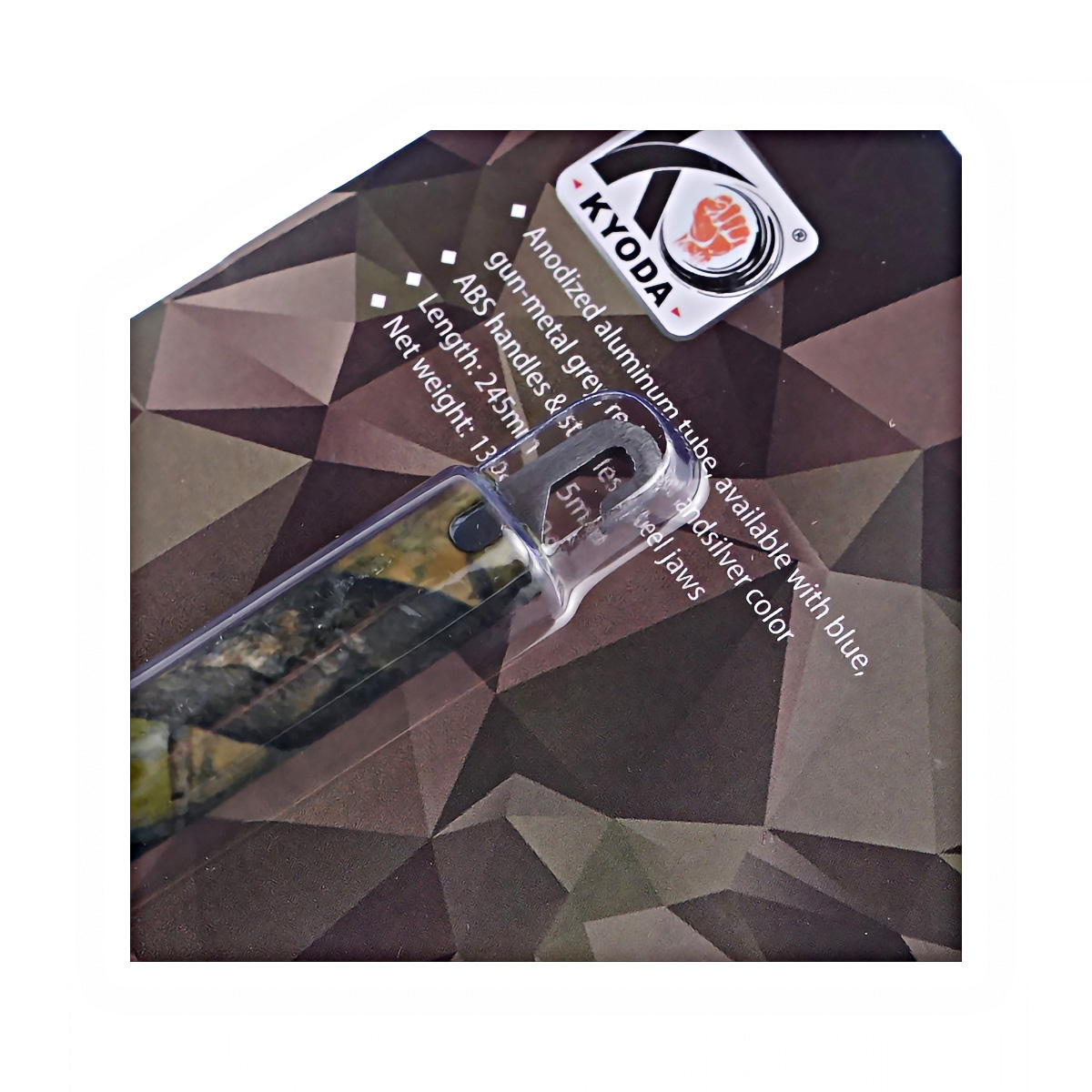 Металлическая конструкция повышает надежность и износостойкость в полевых условиях, а длина 24,5 см облегчает работу с хищником и при глубоком заглатывании. Камуфлированная окраска (КМФ) практична на рыбалке и не бликует на солнце