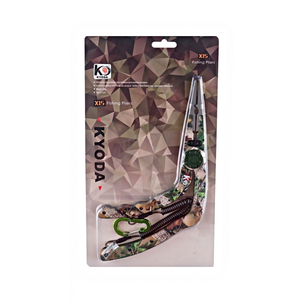 Пассатижи рыболовные Kyoda с изогнутыми рукоятками, на шнуре с карабином, КМФ