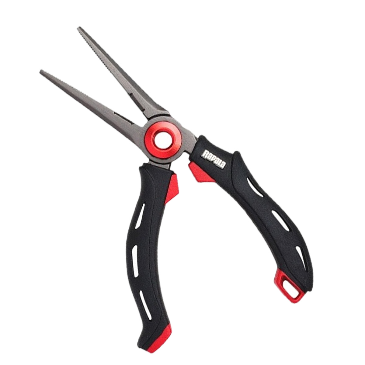 Магнитный узел Mag‑Spring удерживает губки приоткрытыми — инструмент всегда готов к работе и не требует пружины, которая со временем ржавеет или ломается. Это облегчает съем крючков и работу в перчатках или на волне одной рукой. Встроенный резак справляется с большинством типов лесок, а насечки на губках фиксируют фурнитуру без проскальзывания. Смещенная (off‑set) геометрия улучшает обзор и доступ в пасть рыбы.