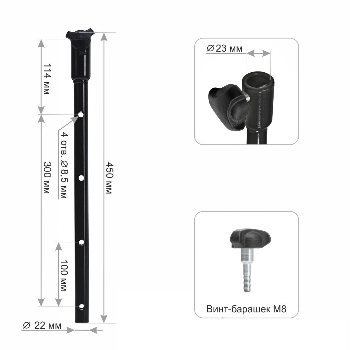 - В комплекте винт-барашек М8.