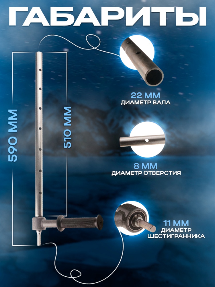 - 22мм - совместим с шнеками Mora Nova System, Mora Nova Black, Моровские шнеки, ледобур Айсберг Евро, Сибирия, АрктикMora, Тонар "Iceberg" "Indigo"