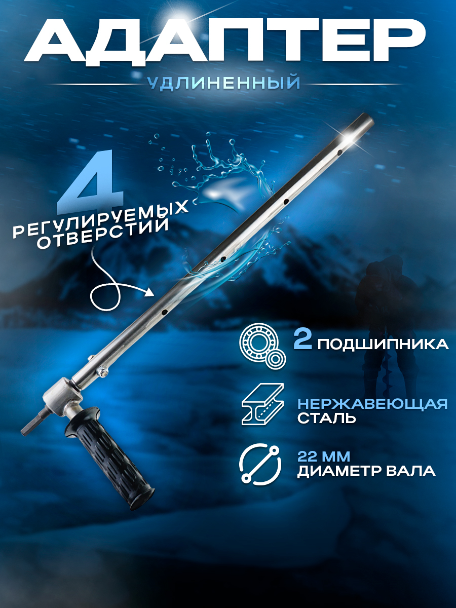 Адаптер к шнеку ледобура d22мм для шуруповерта, 2 подшипника, сталь (50см)