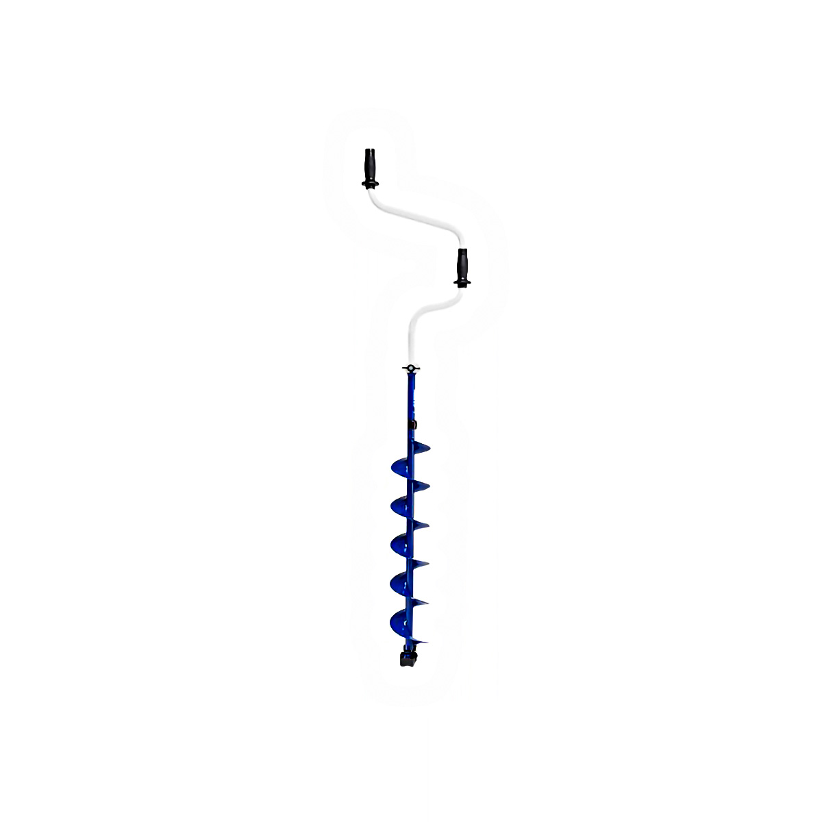 Верхняя рукоятка ледобура смещена относительно оси шнека на 130 мм, а нижняя на 150 мм. Такое расположение рукояток позволяет вращать ледобур одновременно двумя руками, тем самым, не прикладывая особых усилий, увеличивая скорость бурения лунок во льду.