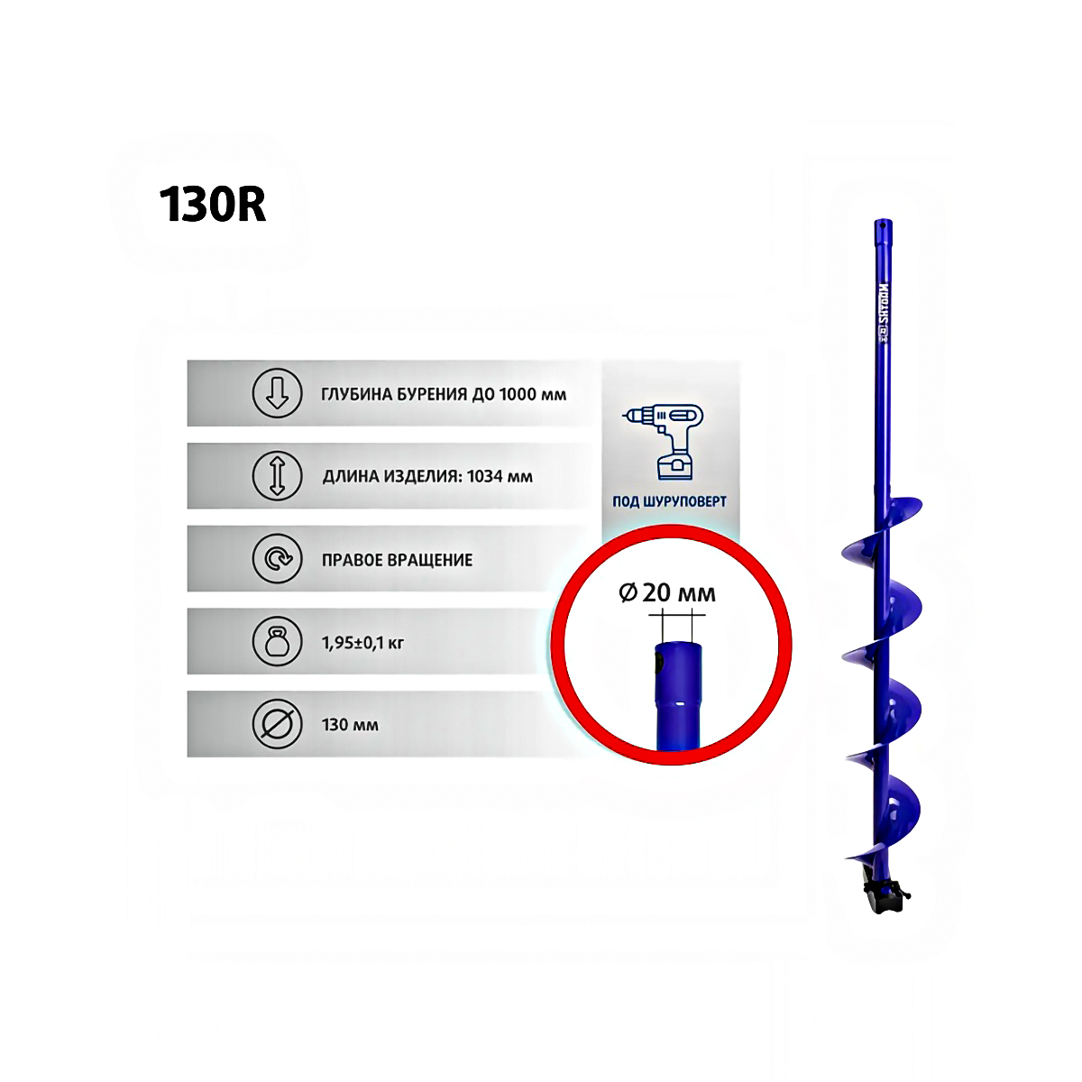 Шнек к ледобуру Electroshtorm 130R (правое вращение) (SEH-130R) (Тонар)
