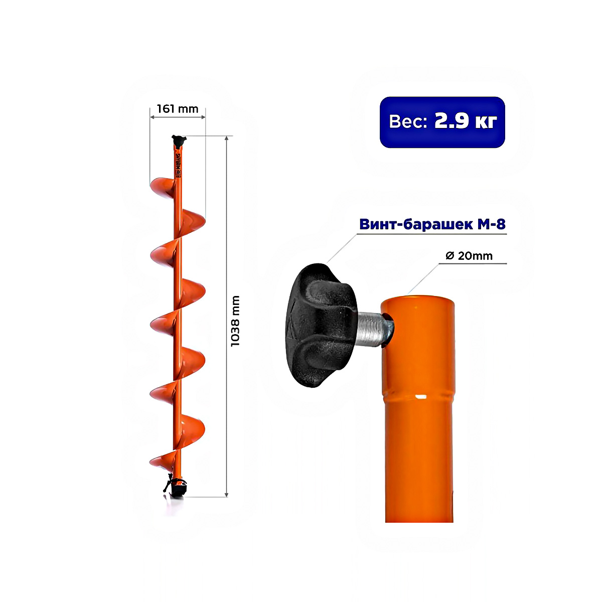 Если толщина льда более одного метра, то на шнек необходимо установить Удлинитель шнека УШ-250.19 или УШ-400.19, которые позволят увеличить глубину бурения на 25 и 40 см соответственно.