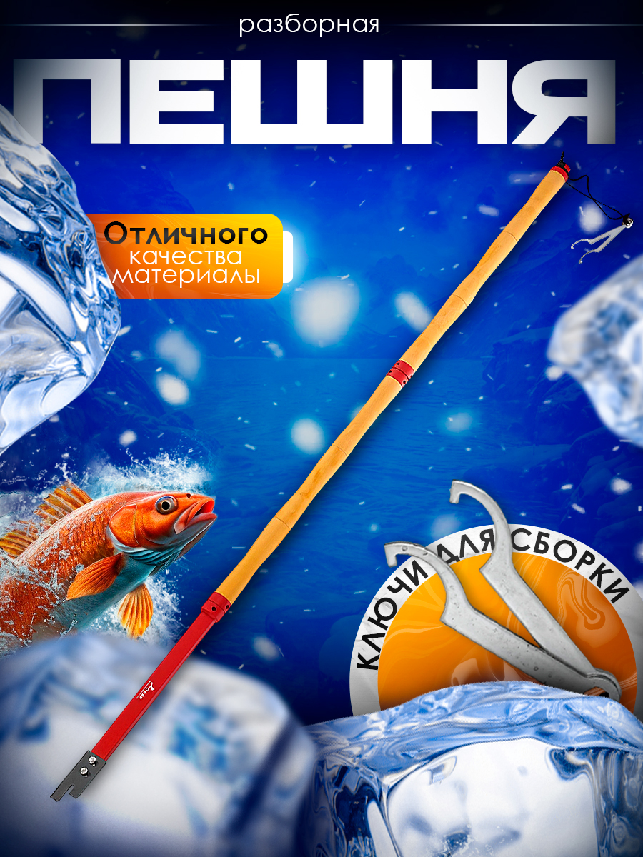 Эргономичная деревянная ручка состоит из двух частей, при необходимости одну из рукояток можно убрать. Ручка пешни изготовлена из березы и покрыта специальным антисептическим, защитно-декоративным составом.