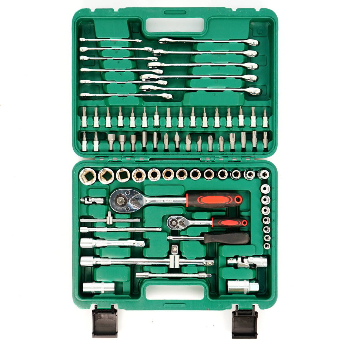 По сравнению с наборами в пластиковом кейсе эта модель легче размещается в автомобиле и быстрее готова к работе: инструмент разложен по отделениям, доступ к нужному предмету — с первого взгляда. Расширенный набор комбинированных ключей (15 размеров до 24 мм) и крупные головки до 32 мм выгодно отличают её от бытовых комплектов, ограниченных мелким крепежом. Пожизненная гарантия производителя подтверждает ресурс и надёжность для регулярной эксплуатации.